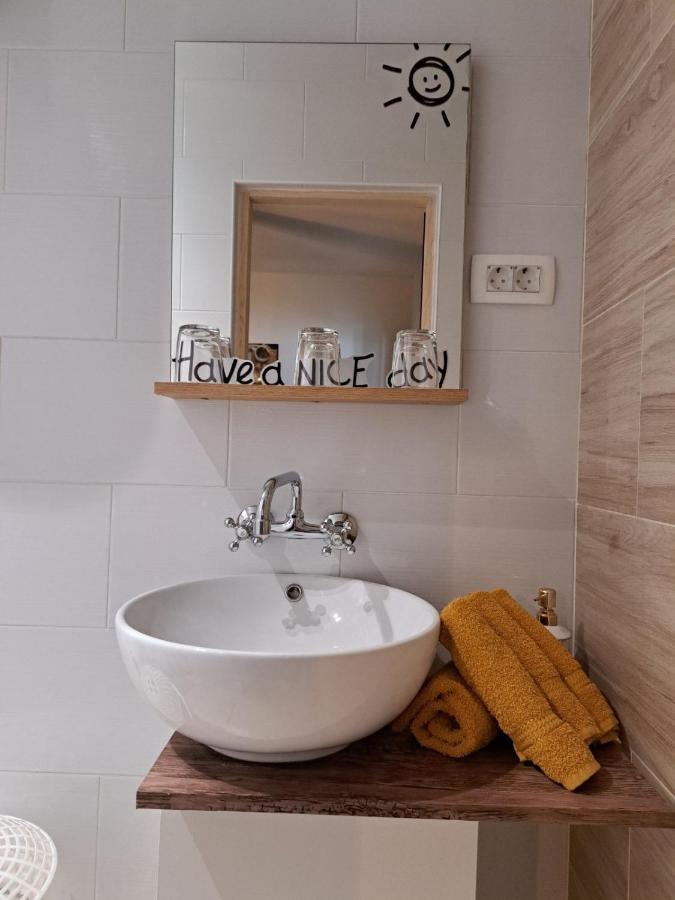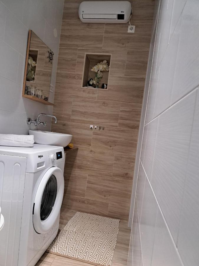 Kupaonica je moderno uređena i opremljena kako bi osigurala potpunu udobnost tijekom vašeg boravka. Sadrži prostrani walk-in tuš koji pruža osvježavajući doživljaj, a gostima su uvijek dostupni svježi, čisti ručnici za maksimalnu higijenu i udobnost. Kupaonica je opremljena i perilicom rublja, što je idealno za duže boravke ili obitelji. Funkcionalan dizajn i kvalitetni materijali stvaraju ugodan ambijent, dok praktični detalji, poput dobro organiziranog prostora za pohranu, čine korištenje kupaonice jednostavnim i praktičnim. Sve je pripremljeno kako biste se osjećali kao kod kuće, uz dodatni dodir luksuza.